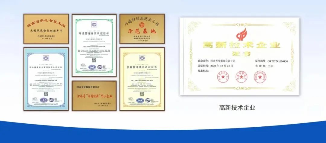 天曼服飾智能化工廠還先后被河南省工信廳認定為“專精特新智能化工廠”,被河南省科技廳評定為 “高新技術企業”,并榮獲 “河南省智能制造試點示范企業” 稱號。旗下 “屹奧校服” 品牌更在行業內屢獲殊榮:2023 年摘得 “全國十大校服最具影響力品牌”,2025 年獲評 “全國校服四星級標準校服生產基地”,成為河南省唯一獲此雙項榮譽的校服企業。這些資質不僅彰顯了企業在技術創新與品質管控上的領先優勢,更成為天曼服飾拓展跨境市場的 “硬核背書”。