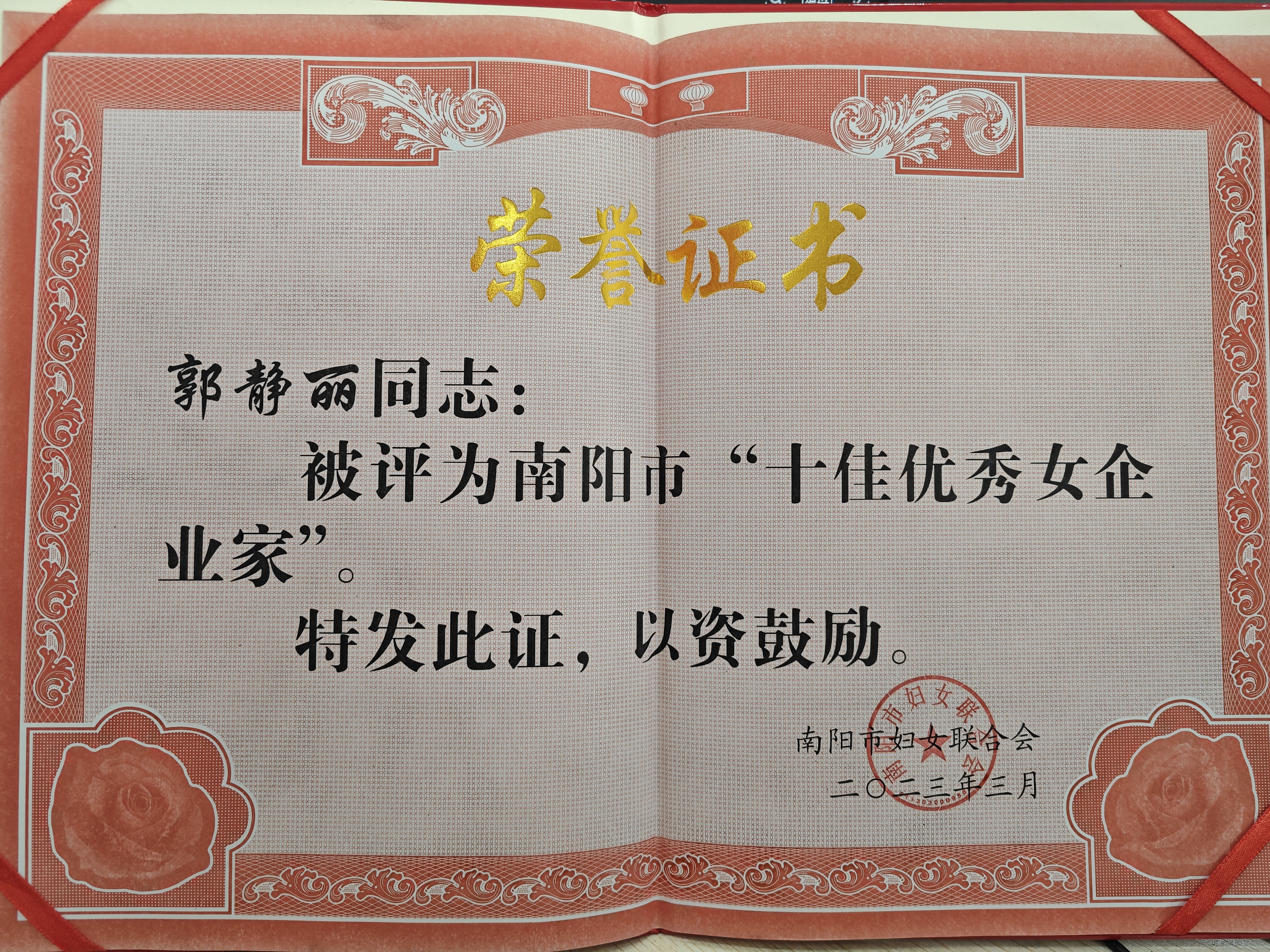 - 熱烈祝賀河南天曼服飾 郭靜麗董事長榮獲南陽市十大優(yōu)秀女企業(yè)家榮譽稱號