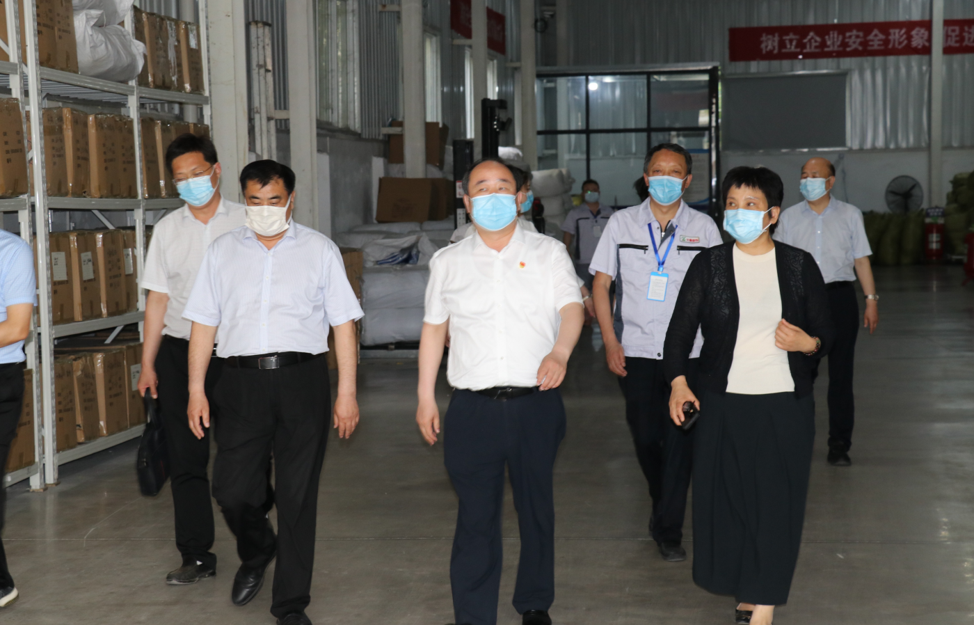 5月29日,河南省內(nèi)鄉(xiāng)縣委書記、縣長張智廣,縣政府黨組副書記王宜顯一行,帶領(lǐng)相關(guān)職能部門領(lǐng)導(dǎo),深入河南天曼服飾調(diào)研,聽取企業(yè)負(fù)責(zé)人匯報(bào)情況,針對河南天曼服飾未來發(fā)展,召開現(xiàn)場專題座談會。明確提出“吃牧原肉、穿天曼衣、用聚愛優(yōu)選食材,走幸福大道”、擴(kuò)大縣域經(jīng)濟(jì)“內(nèi)循環(huán)”的口號,河南天曼服飾全體員工倍感鼓舞。